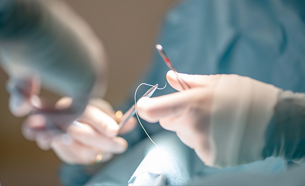 라인에 맞춰 흉터가 거의 남지 않도록 실로 매듭을 지어 고정합니다.