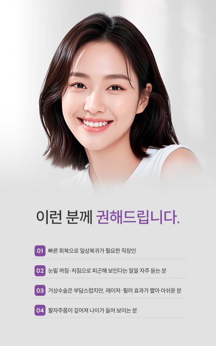눈밑과 팔자를 다시 빛나게 합니다.